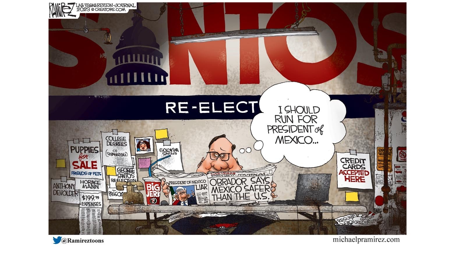 Michael Ramirez is a two-time Pulitzer Prize winner, Reuben winner and the editorial cartoonist for the Las Vegas Review-Journal