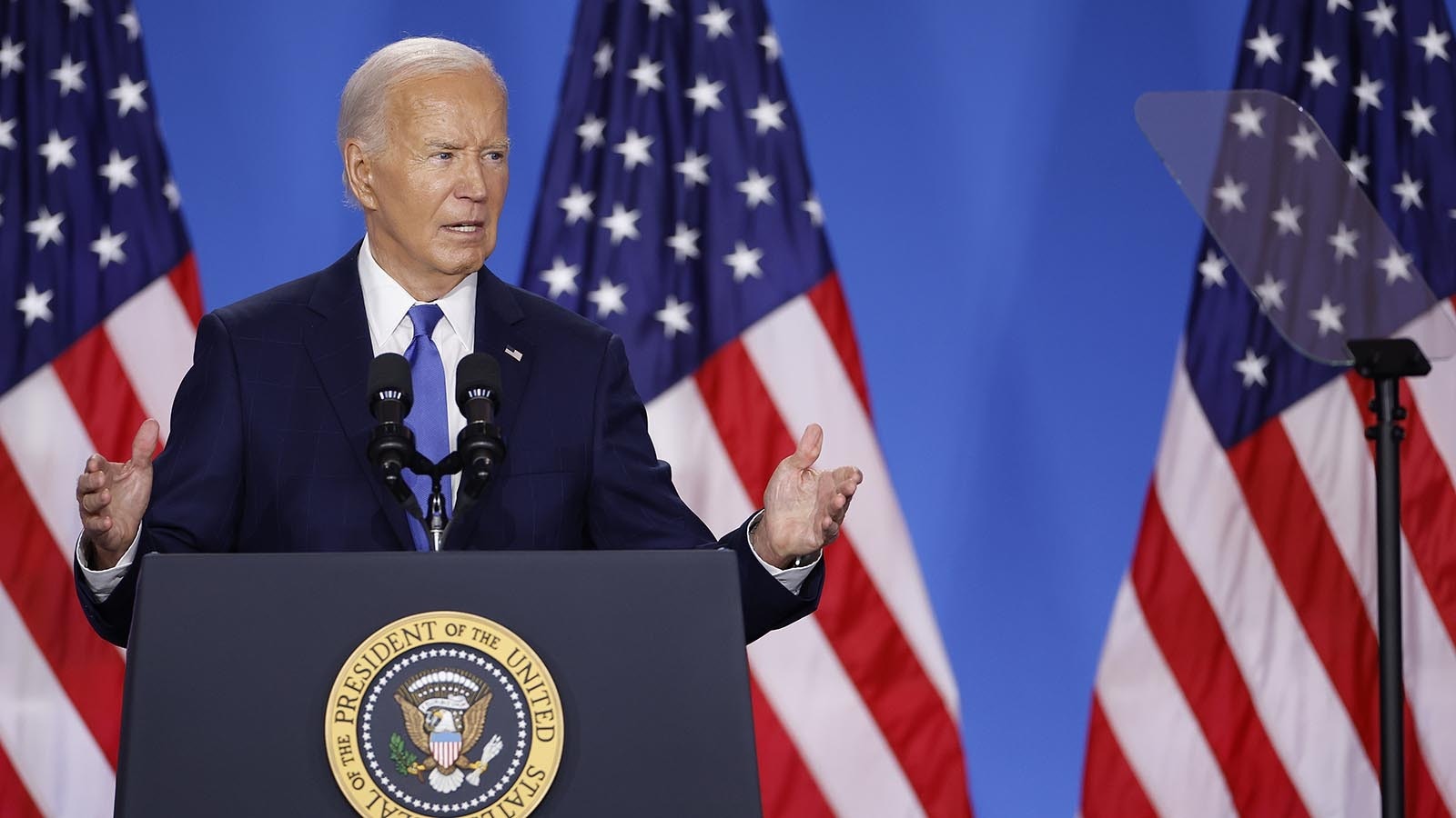 In response to multiple questions about the nine-month war in Israel and Gaza, which Gaza's ruling Palestinian party Hamas initiated Oct. 7, 2023, with a brutal attack on Israeli civilians, Biden said he’s been negotiating with Arab states and Israel to broker a ceasefire.