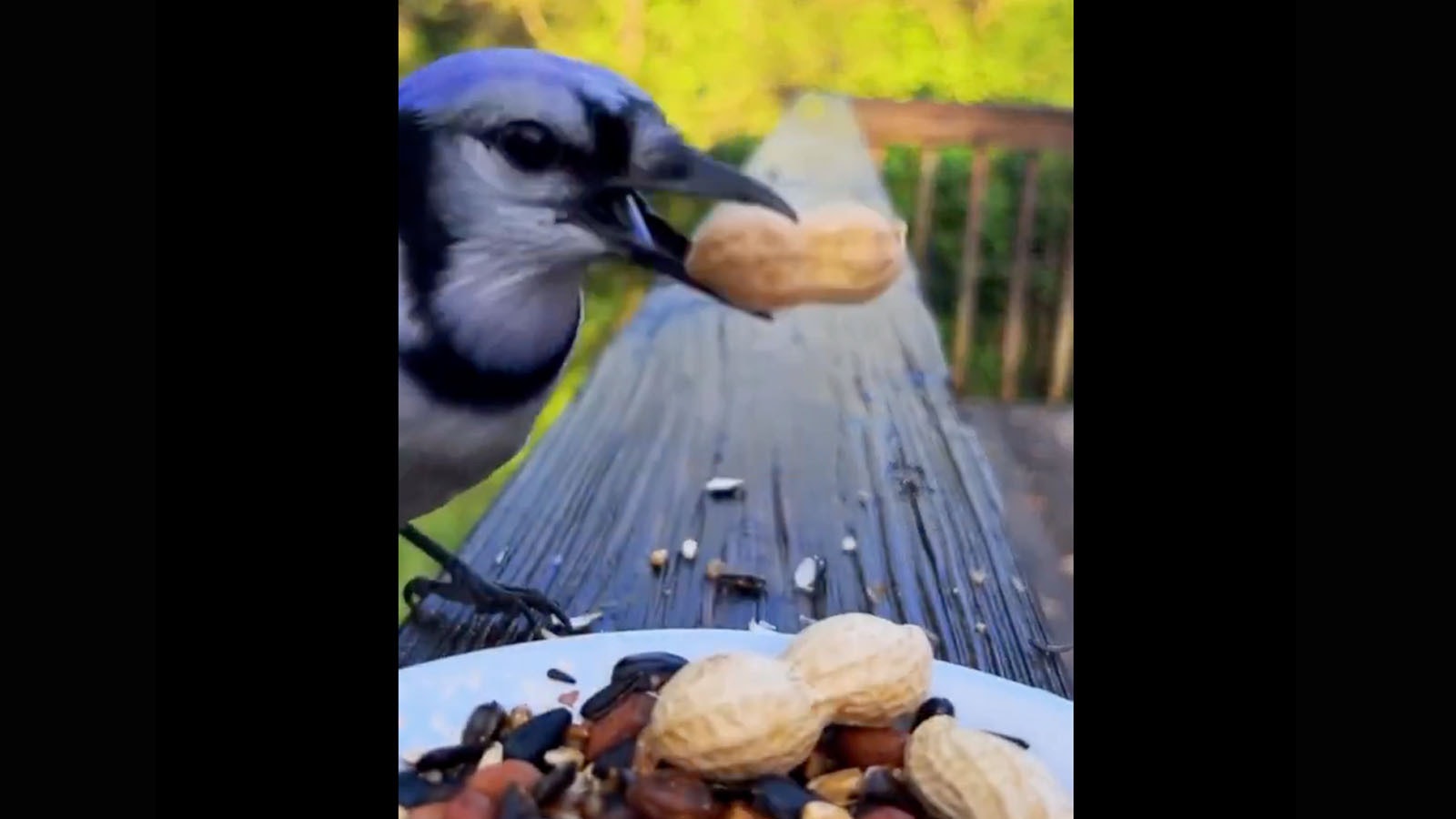 Footage captured by person who left bird food and a camera on her balcony....