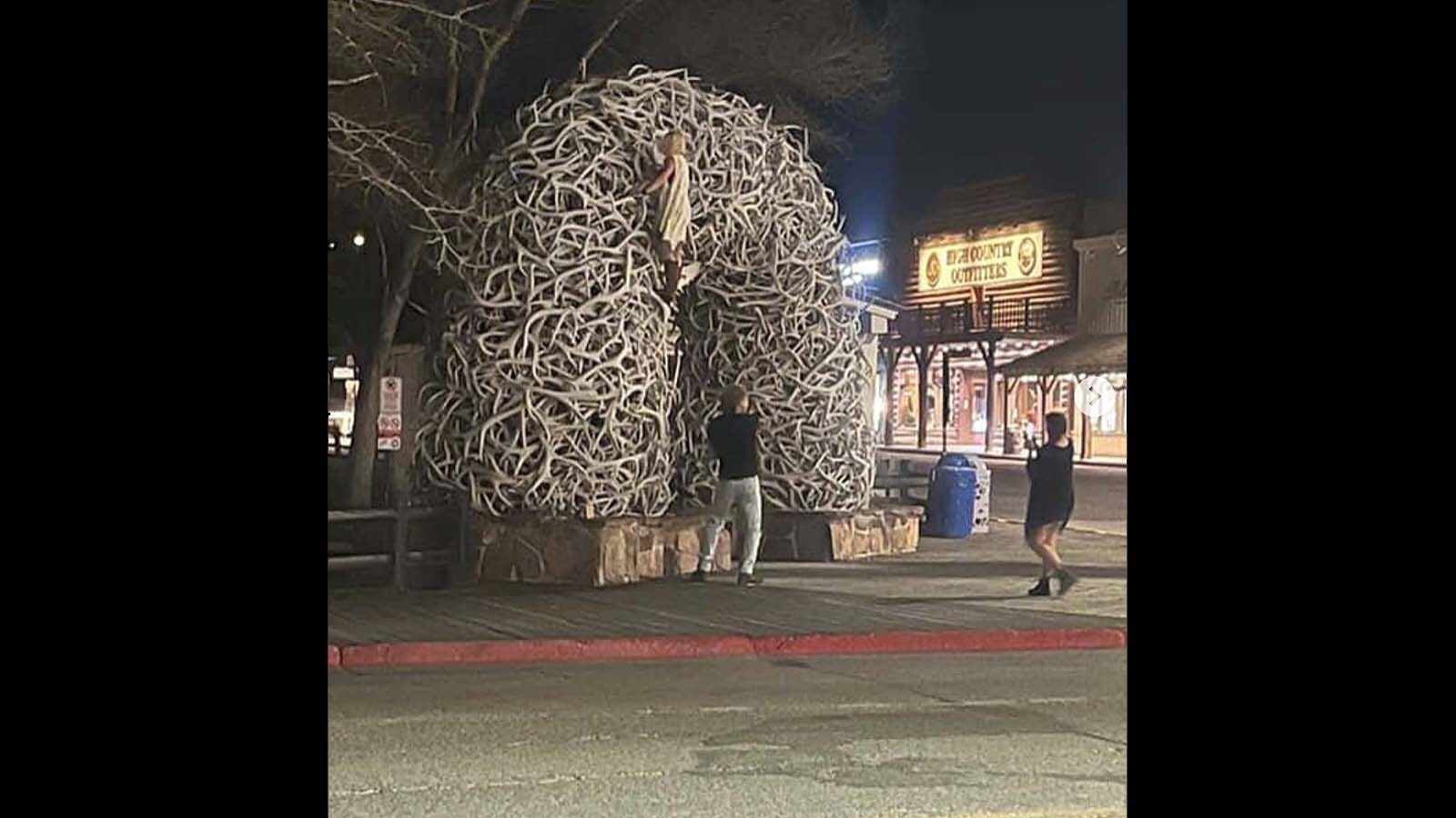 “In the service notes, the responding officer said he observed a person climbing the antler archway on the southwest corner of Jackson Town Square,” Ruschill said. “He was given a $100 citation.”