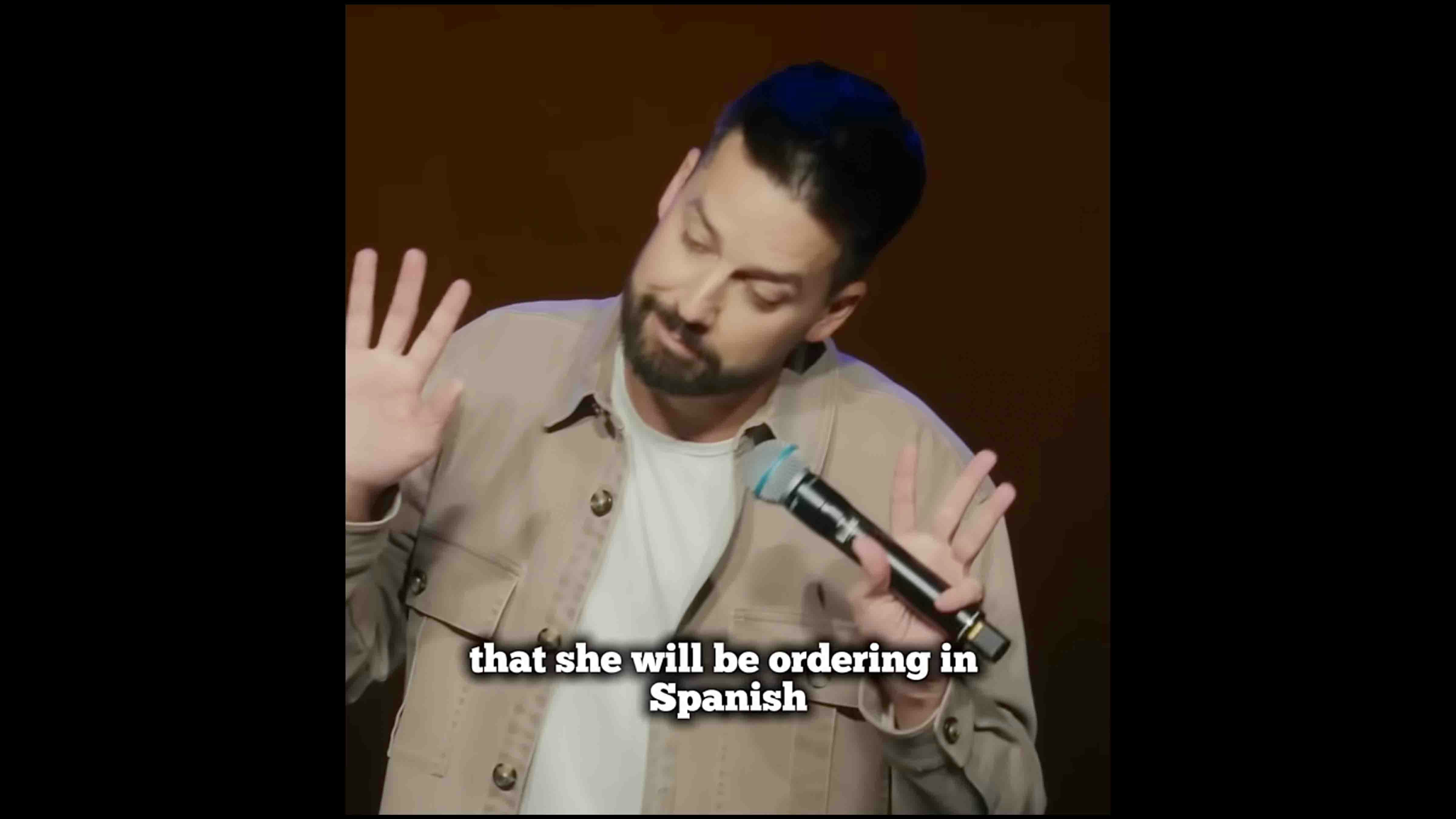 "And my mother announces that she will be ordering in Spanish..."