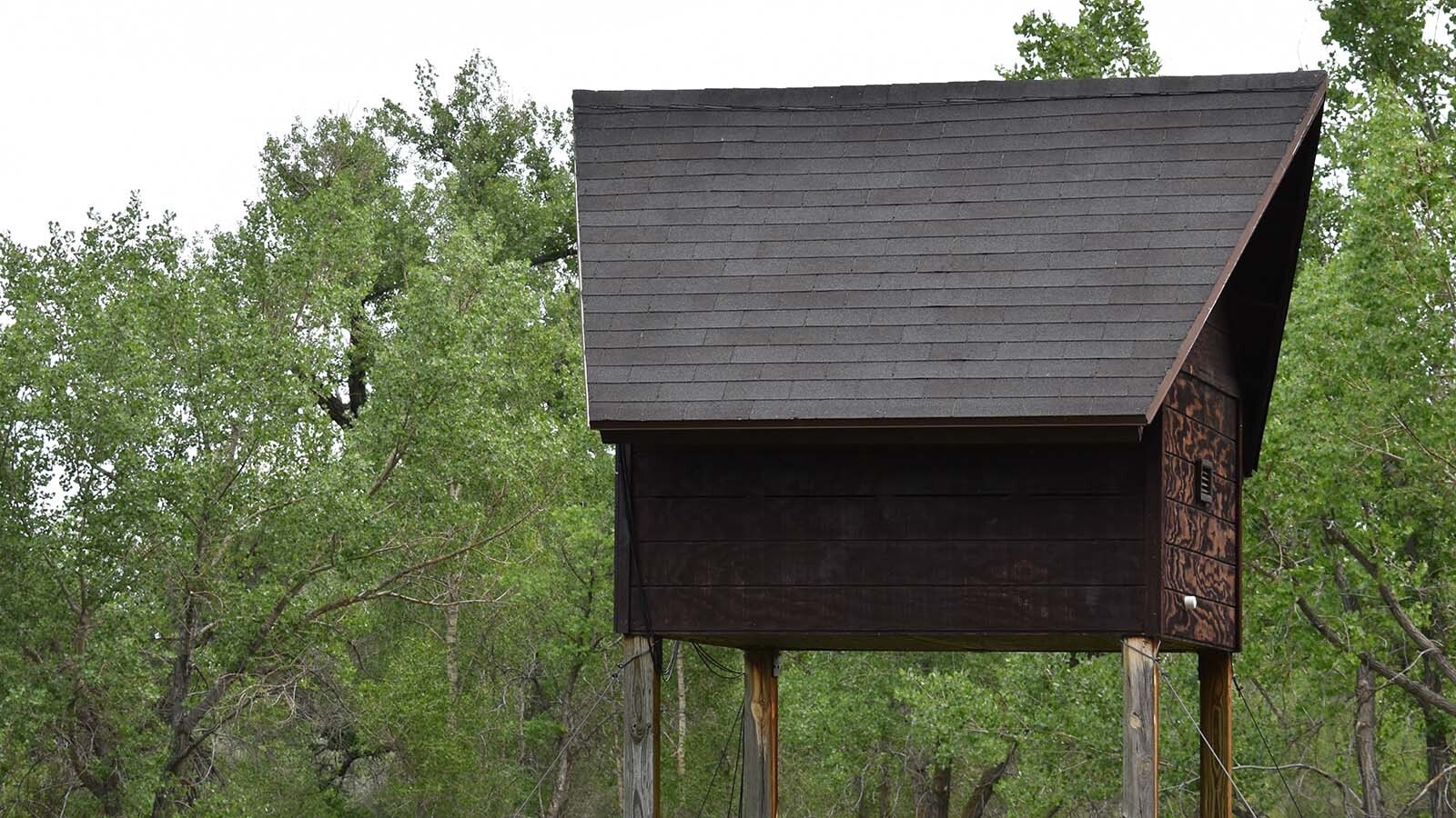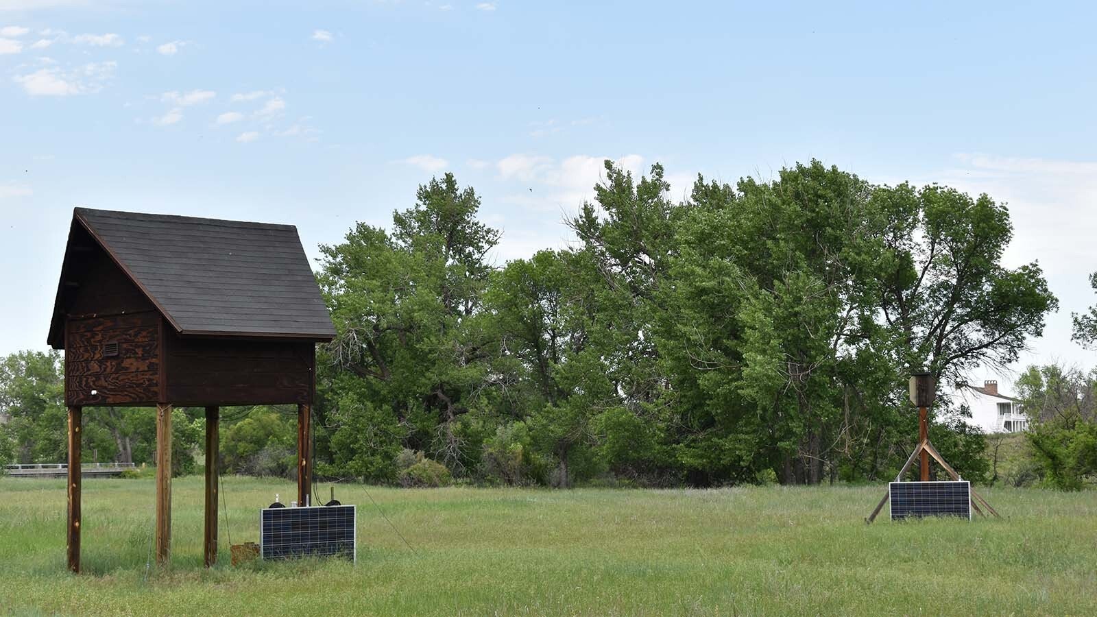 The big brown bats aren’t the only bats who occupy Fort Laramie in the summer. There are also little brown bats, who live in nearby bat condos, which look a bit like tiny treehouses on stilts.